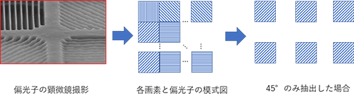 実際、偏光光を当てた被写体を撮影すると4つのうちの特定の画素が黒くなっており、画像がモザイク状に見えてしまう点が弱点なんです(図2)。