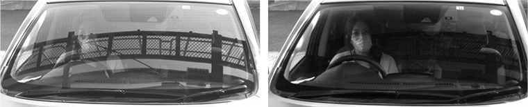 他には、海外のニーズになりますが、車内の乗車人数によって駐車場の料金が変わるシステムがあると聞いています。また、混雑緩和のために一定数以上の人の乗車が必要な道路が設けられている国もあります。これらの用途も車内を確認するニーズになりますね。 下記は、ITSアプリケーションを想定した反射除去の例ですが、 いずれの場合でも反射除去により車内がよりクリアに確認できるようになっていることが分かるかと思います。