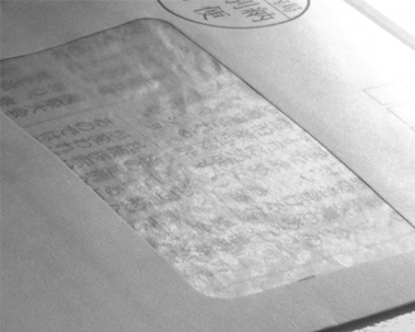イメージしやすいものだと、郵便物で宛名の箇所がフィルムになっている封筒がありますよね。一般的に窓付き封筒といわれているものですが、その窓の部分をカメラで読み取り、仕分けを自動化するニーズが存在しています。そういった用途でもフィルム上の反射が問題になります。