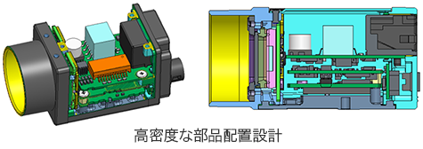 ・カメラ内で発生する熱を、光学系(CCDやレンズ)に影響を及ぼさないように、効果的に放熱する設計