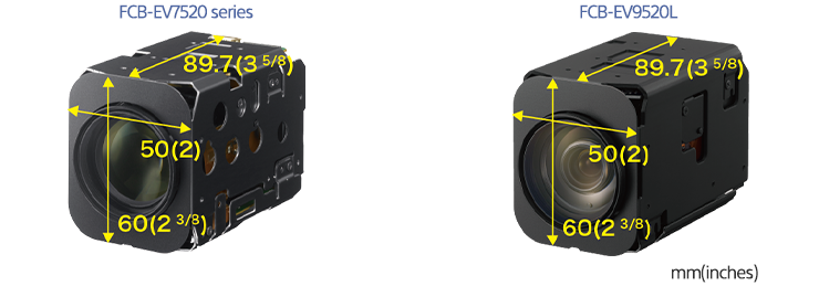 従来機種(FCB-EV7520シリーズ) と同一筐体サイズのため、置き替えが容易に行えます* 。 また、LVDS出力のピンアサインメントについても同等なので、設計工数を大幅に削減できます。
