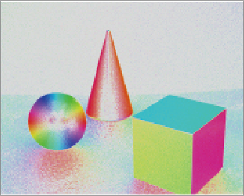 同系色でカメラで認識しにくい物体の形状、面の向きを見やすく表示します。