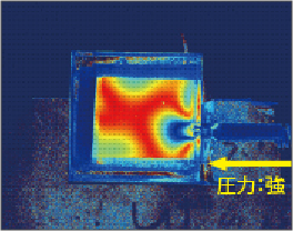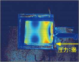 偏光板を通した光が透明、半透明の物体を透過した際のひずみの有無や方向を表示