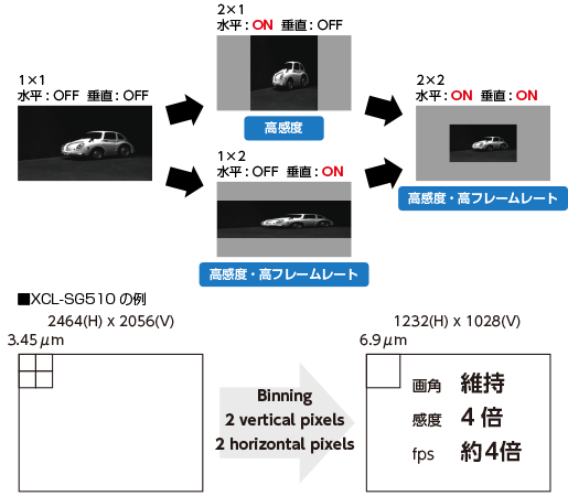 ※XCL-SG1240/XCL-CG510/XCG-CG510/ XCG-CG240はビニングによるフレームレートの変化はありません。