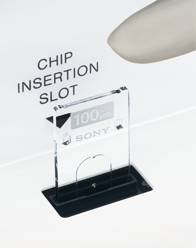 光ディスクで培った微細加工技術を応用した新開発のプラスチック製のセルソーティングチップを採用しました。オリフィス径の違いにより複数種類のチップを用意し、測定する細胞の種類やサイズに応じて、最適なチップを選択することができるため、簡単に交換・装着することが可能になりました。