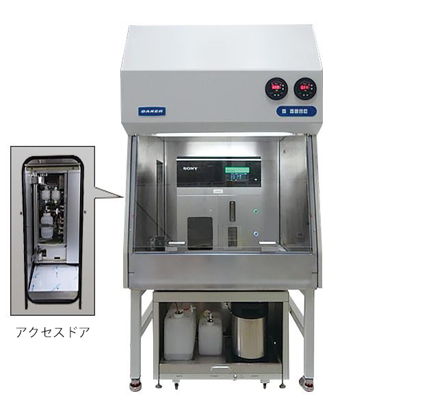 バイオセーフティキャビネットのリーディングカンパニーであるアメリカ ベーカー社によって開発された、ソニー製セルソーター専用のバイオセーフティキャビネットです。