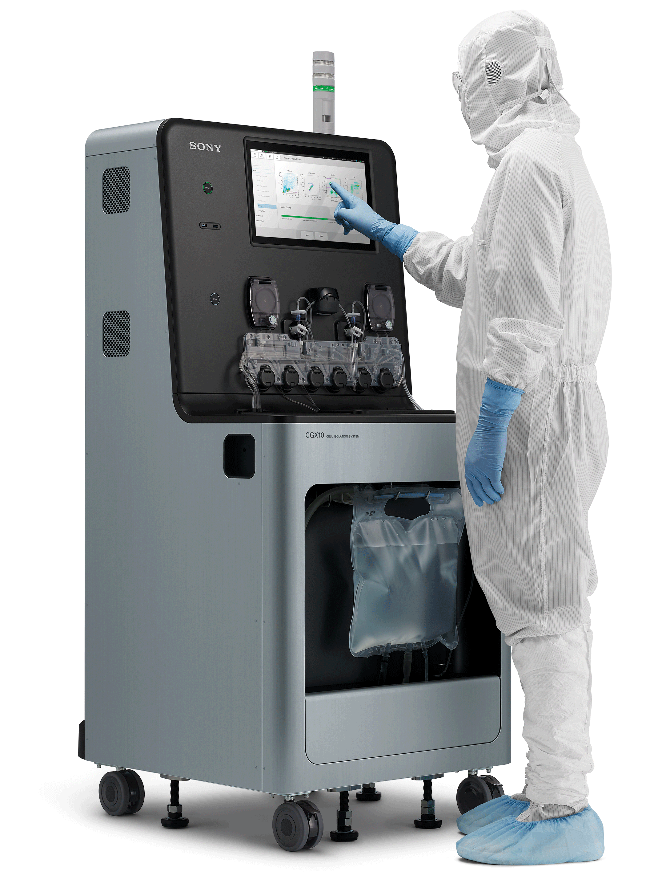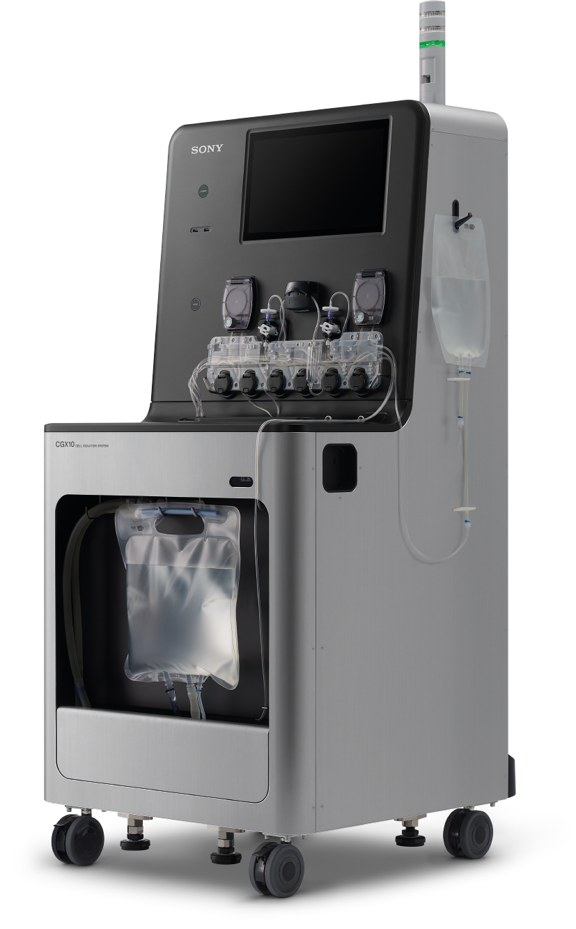セルアイソレーションシステムCGX10は、GMPに適合した細胞製造と細胞分取のニーズに対応可能な、完全閉鎖型細胞分取システムです。簡単操作と高度な柔軟性を担保しながら、優れた細胞分取を実現します。また、プロセス開発から細胞製造へのスムーズな移行を可能にします。