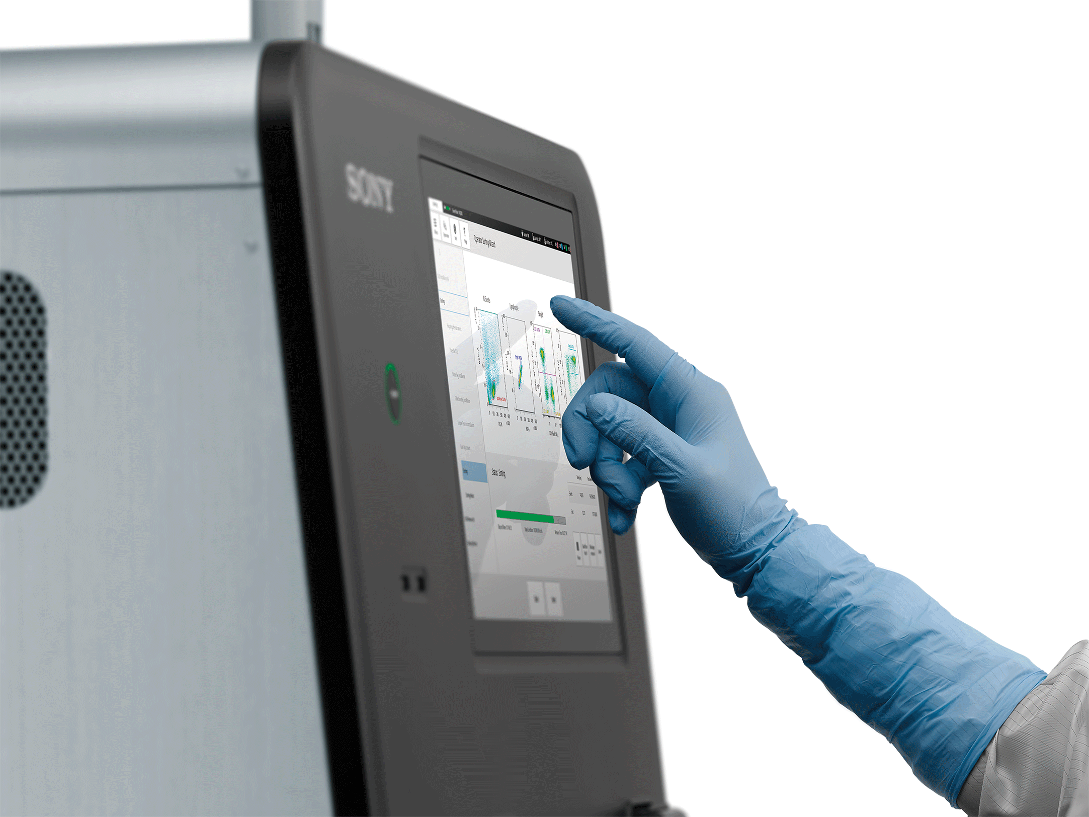 従来型フローサイトメーターの使用は、 研究所での基礎研究や前臨床・初期段階の治験に限られています。また、多くの装置は機能が複雑で操作が難しく、GMPに適合した細胞製造環境に適しているとは言えません。