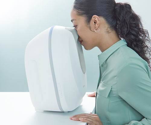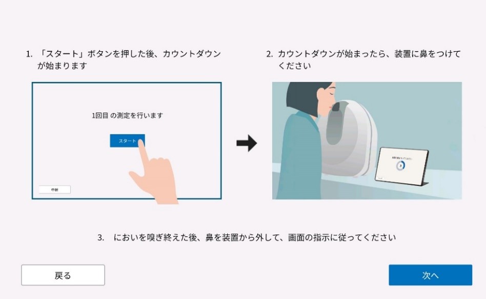 被験者は本体に新しくセットされたノーズガイドに鼻を合わせます。