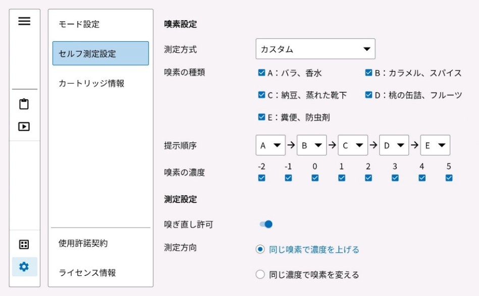 セルフ測定:提示する嗅素/順序をカスタマイズ可能