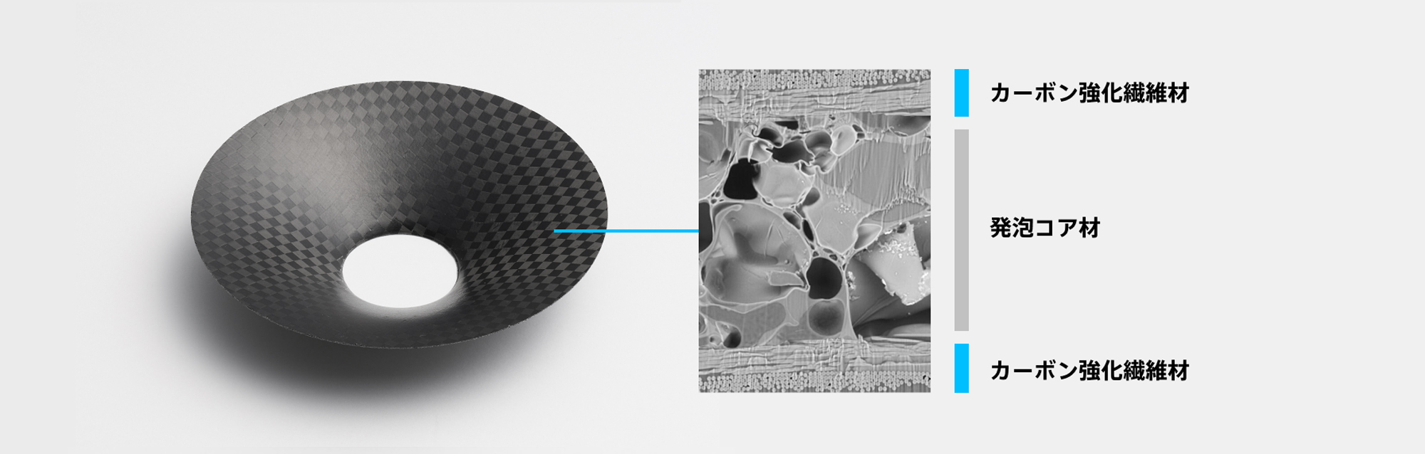 当社の様々な音響製品で採用されている軽量発泡振動板は、軽量、高剛性かつ適度な内部損失を備えた特性を実現し、広い周波数帯域で力強くクリアなサウンドを提供します。