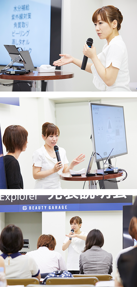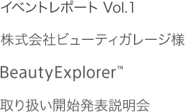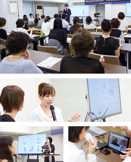 プロ向け美容商材通販最大手である株式会社ビューティガレージ様がBeautyExplorer™取り扱い開始発表説明会を開催されました。美容サロン経営者やエステティシャンの方々に向け、商品の紹介、測定体験、さらにエステサロン「パールケイ」代表の服部恵先生による特別セミナーも行われました。本レポートでは、参加者の方々に大好評だった特別セミナーの内容を中心にイベントの模様をご紹介します。