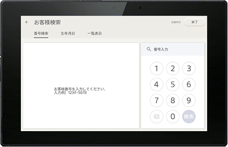 お客様ごとに自動で割り当てられる本サービス専用のお客様番号(8桁)で検索が可能です。