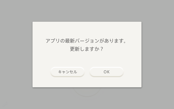 - 「アプリの最新バージョンがあります。更新しますか?」という画面が表示されましたら[OK]を選択してください。