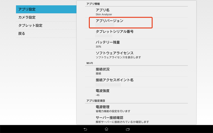 続いてSkin Analyzerのアップデートを行います。4. Skin Analyzer アプリ最新バージョンの確認