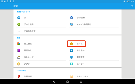 *以下の説明の表示画面はお使いのタブレット端末のバージョンにより多少異なる場合があります- スタート画面の左下にある(設定ボタン)を選択します。