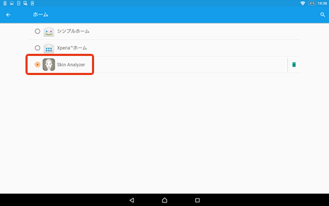 ホームボタンを押してもホームアプリ選択画面が表示されない場合、もしくはSkin Analyzerアプリが起動しない場合は設定ボタン(