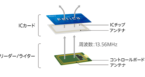リーダー/ライターとカードの間の通信は、リーダー/ライター から発信される電磁波によって行われます。