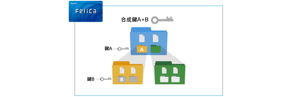 FeliCaカードは、一枚のカードの中で多目的のデータを管理することができます。各々のデータには個別のアクセス権を設定することが可能で、これによってアプリケーション間の安全な相互運用が実現されています。