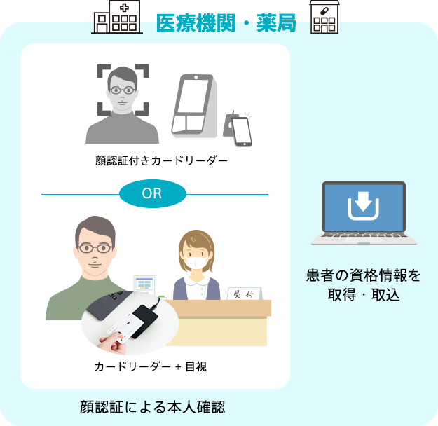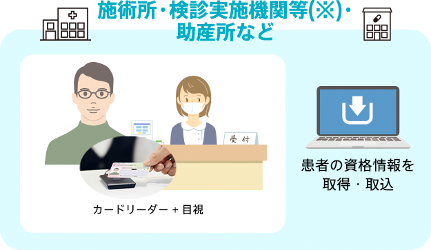 これにより、医療機関・薬局の窓口で直ちに、健康保険証の資格確認ができるようになりました。また、施術所・検診実施機関・助産所(資格確認限定型)でも直ちに、健康保険証の資格確認ができるようになりました。※ 詳細は厚生労働省のページ