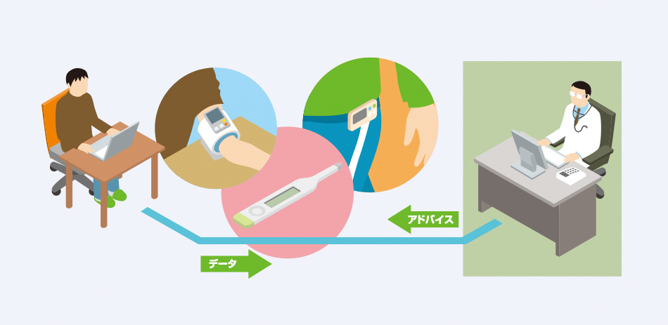 | ❶FeliCa対応健康機器 | FeliCaのデバイスをさまざまな健康機器へ内蔵し、FeliCaポート搭載パソコンでデータ管理ができます。 |