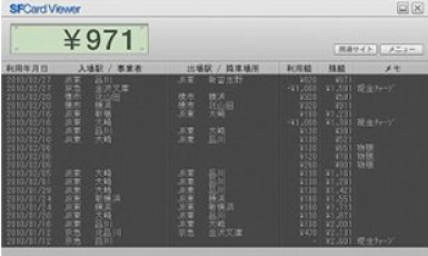 交通系ICカードの残高、乗車履歴、利用履歴を確認。
