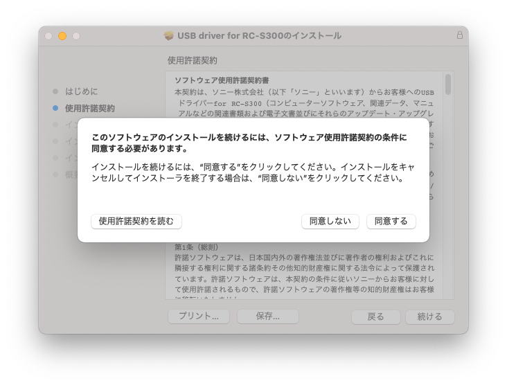 使用許諾を確認し、同意いただける場合は「同意する」をクリックして進みます。