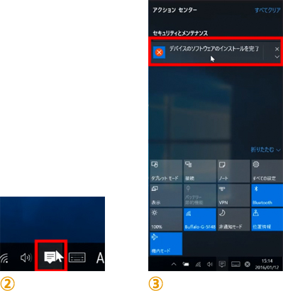 タスクバーに吹き出しアイコンが表示されない場合をご参照ください。②ドライバーインストール後、タスクバーに表示される
