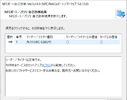 ⑤ 自己診断結果で[リーダー/ライターとの通信]および