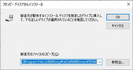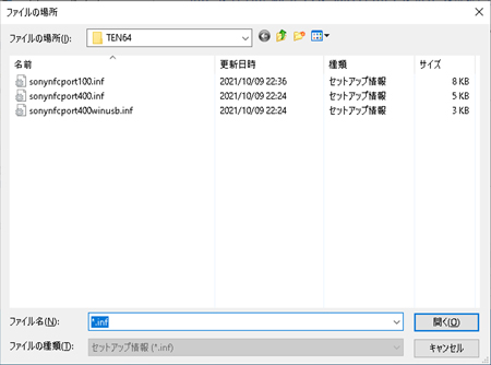 C¥ProgramFiles(x86)¥Sony¥FeliCaRW¥Drivers¥TEN64の中のファイルをダブルクリックしてください