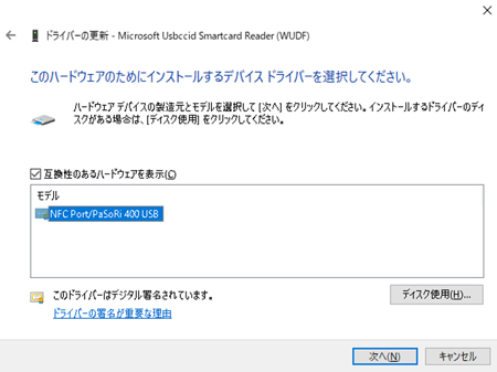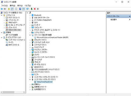 続いて、ユニバーサルデバイスパス以下のデバイス (FeliCa Port/PaSoRi 4.0)を選択し、同様の処理を行います。