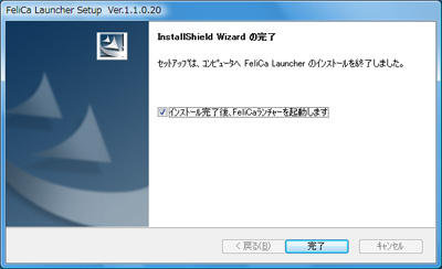 「完了」をクリックすると、FeliCaランチャーが起動されます。