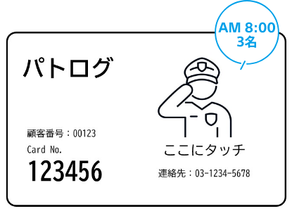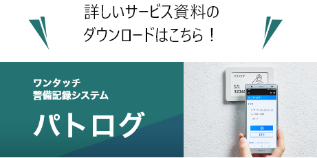出退勤(上下番)や巡回の記録がワンタッチでできるシステムです。