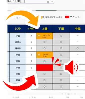 カードごとにアラート条件を設定できます(時間/人数)。 -