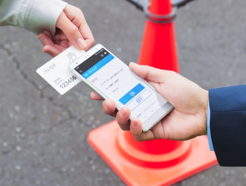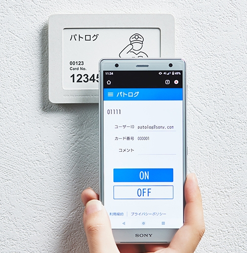 パトログは、現場に設置されたICカードにスマホをタッチして