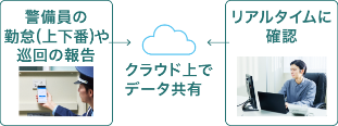 データはクラウド上で共有でき、現場の警備員やスタッフの状況がリアルタイムで確認できるほか、