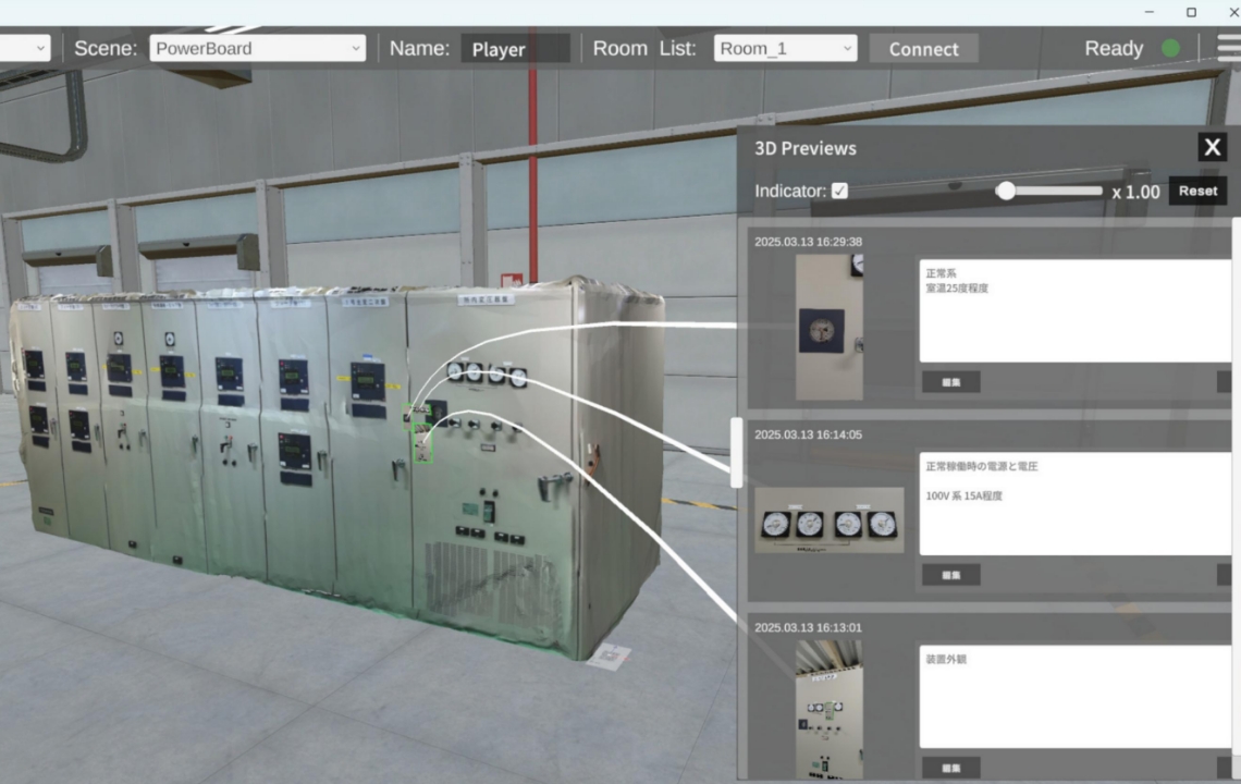 3次元位置に紐づけて写真やコメントの記録を残すことができます。