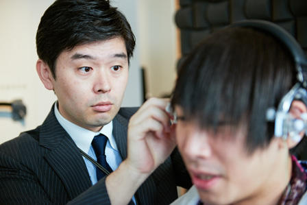 松尾:「Just ear」の場合はまず、私どもが試行錯誤しながら開発したオリジナルのヘッドゲージをつけていただき、より緻密に耳の型を採っていきます。最初は耳の中の状態を細かくチェックします。中に耳垢がないかなど、衛生面も含めて。