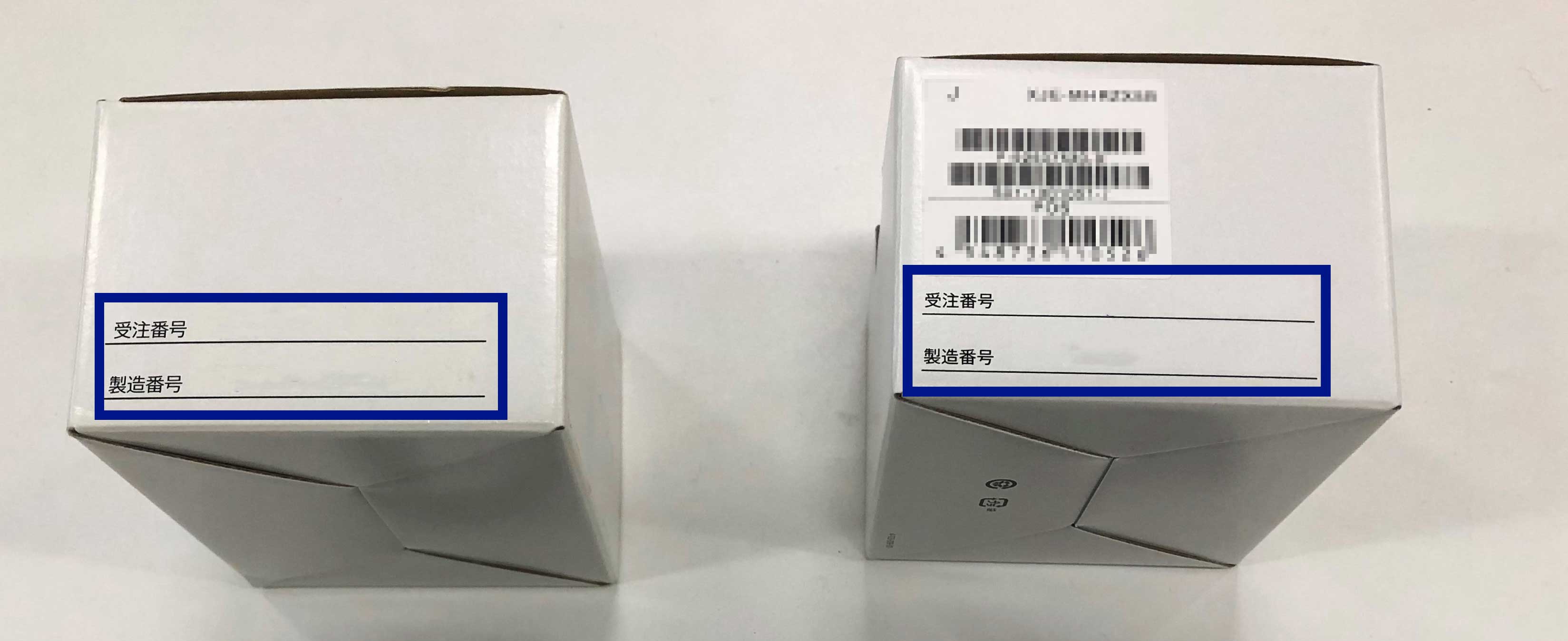※修理カルテに記載いただく受注番号、製造番号は製品外箱に記載されております
