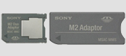- メモリースティック PRO™ デュオサイズスロット搭載機器でご使用の場合は、M2™ とMSAC-MMD(メモリースティック