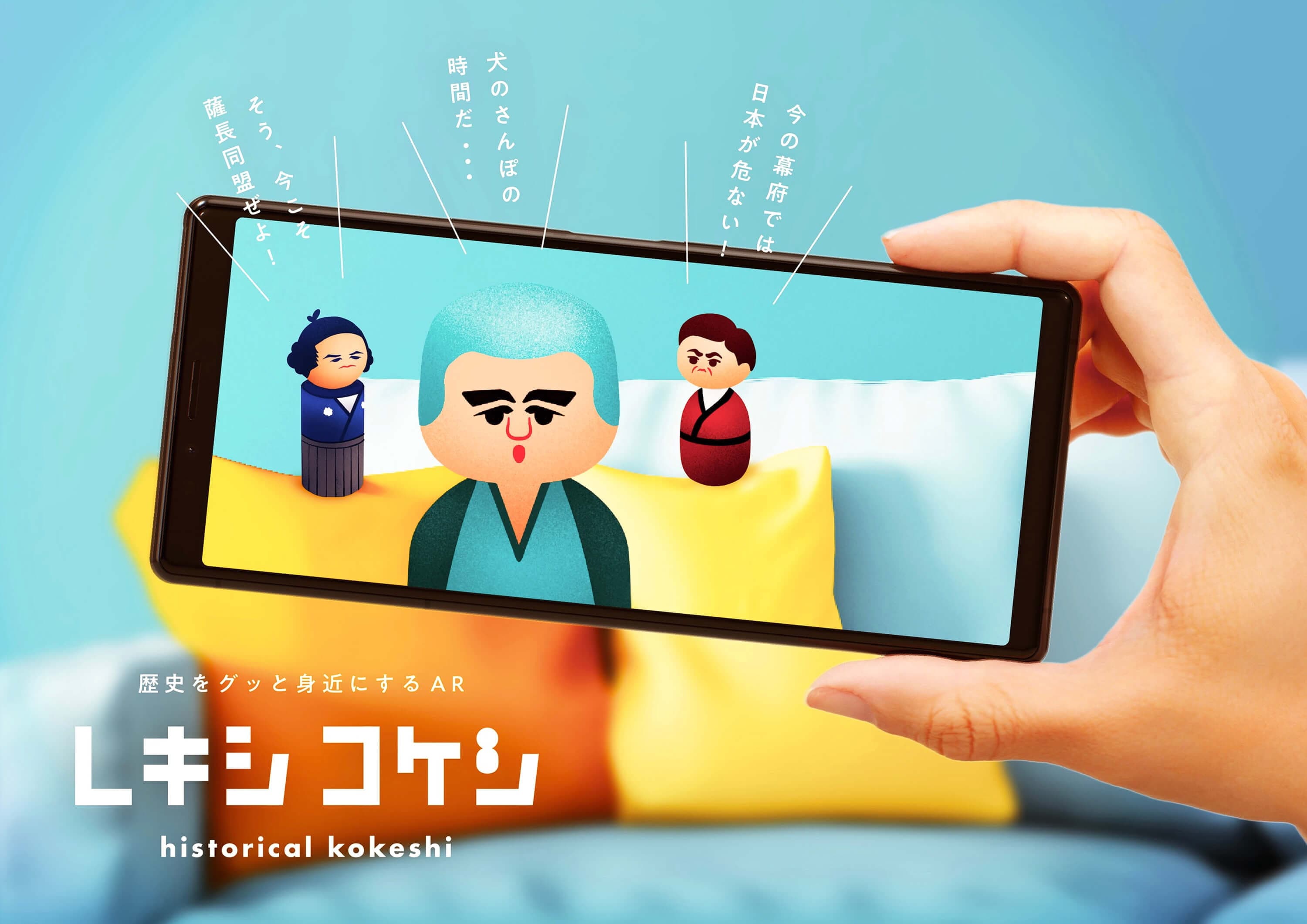 可愛らしいコケシの姿になった歴史の人物をAR空間に配置して、表情トラッキングで表情とセリフを付ける事で歴史を自分なりに楽しく解釈できるアプリ。また、他の人が吹き替えたコケシを自分の身の回りに配置する事でも自ら楽しく解釈できる機能があり、自分の作ったコケシをシェアするだけで人に教えるという能動的な学習効果(アクティブラーニング)を期待できる。