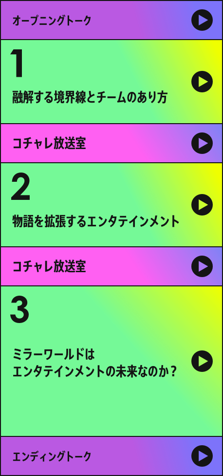 多くのコンテンツのストーリーや世界観をテクノロジーによって拡張し、新しい体験や表現を生み出してきたソニー・ミュージックソリューションズの松崎とともに、物語を核に拡がるエンタテインメントの未来と可能性を探っていきます。