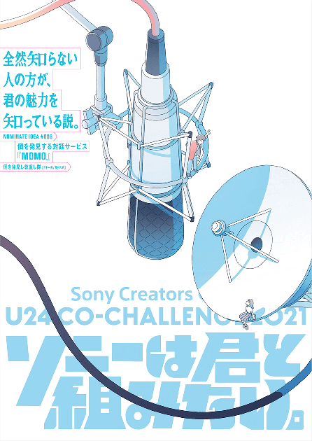 世の中が変わろうとしている今。 前例や慣習はもはや役に立たない。 これからの世界をつくるのは、君自身だ。 君自身の創造する力だ。 その力は、時に現実すら飛び越え、 宇宙にまで羽ばたける。 人間そのものが問い直されている時代、 心を動かす大切さに改めて気づいたからこそ、 新しい人のあり方をつくり、 新しい人と人との関係をつくる、 新しいアイデアを募集します。 ソニーは君と組みたい。 U24 CO-CHALLENGE 2021