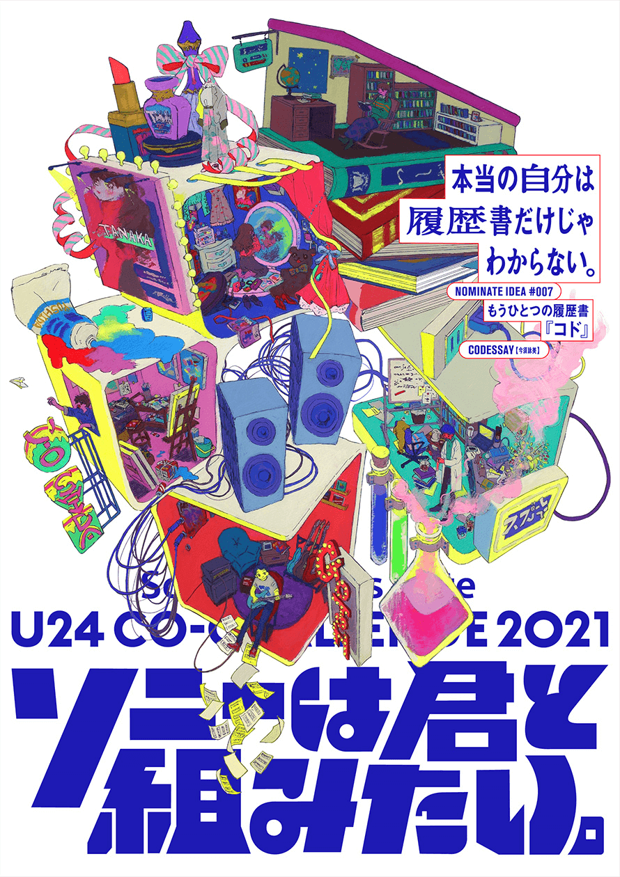 世の中が変わろうとしている今。 前例や慣習はもはや役に立たない。 これからの世界をつくるのは、君自身だ。 君自身の創造する力だ。 その力は、時に現実すら飛び越え、 宇宙にまで羽ばたける。 人間そのものが問い直されている時代、 心を動かす大切さに改めて気づいたからこそ、 新しい人のあり方をつくり、 新しい人と人との関係をつくる、 新しいアイデアを募集します。 ソニーは君と組みたい。 U24 CO-CHALLENGE 2021