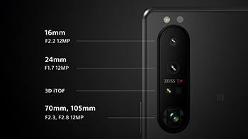 『Xperia 1 III』は、焦点距離※516mm(F2.2)の超広角レンズ、24mm(F1.7)の広角レンズに加えて、高いAF(オートフォーカス)性能を備える世界初※2の可変式望遠レンズを新搭載。1つのレンズで70mm(F2.3)と105mm(F2.8)の2つの焦点距離※5を備え、より被写体にクローズアップした撮影ができるなど、構図の自由度が広がります。また、カメラのスピード性能も一層強化。全てのレンズにデュアルフォトダイオードセンサーを搭載し、焦点距離※5105mmの望遠レンズでも高速・高精度・高追従なコンティニュアスAFを実現します。さらに、任意の被写体を画面上でタッチするだけで、高精度に追従し続ける「リアルタイムトラッキング」※6を新搭載します。ソニーのレンズ交換式デジタル一眼カメラα™(Alpha™)のエンジニアが開発した高いAF性能で、動きの速い被写体も捉えて離さず、大切な一瞬を鮮明に切り取ります。