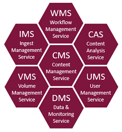 メディア業界の制作ワークフロー自動化やコンテンツ管理のニーズに対応する、クラウド上でスケーラブルに構築可能なシステムソリューションです。複数の異なるマイクロサービスをお客さまの用途や環境に応じて組み合わせることで、様々なシステムを構成できます。各マイクロサービスは独立して機能するため、互いに干渉することなく、追加や削除、拡張することが可能です。