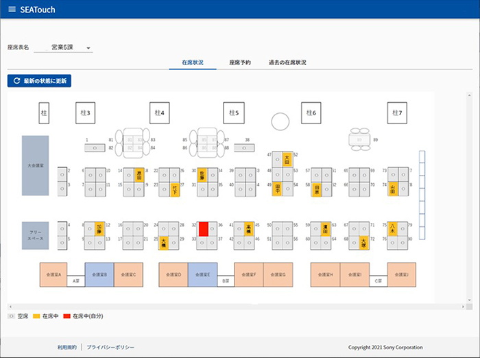 - 2.リアルタイムな座席使用状況の確認と、座席予約が可能