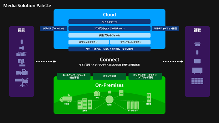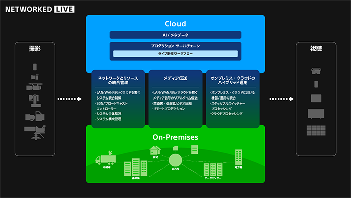 ソニーは、業界に先駆けて提案してきたIPベースの映像制作ソリューション「IP Liveプロダクションシステム」の枠組みを広げ、ネットワークに繋がる制作機器やクラウド上の制作リソースなどを活用した、次世代のリモートプロダクションにも対応するオンプレミスクラウド・ライブプロダクションを「Networked Live」として発表します。「Networked Live」は、オンプレミスとクラウドのサービスの組み合わせによって構成され、今後対応サービスを拡張していきます。
