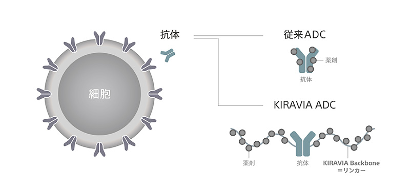 ソニー株式会社(本社:東京都港区、社長 兼 CEO:槙 公雄、以下、「ソニー」)とアステラス製薬株式会社(本社:東京都中央区、代表取締役社長CEO:岡村直樹、以下、「アステラス製薬」)は、ソニーが独自開発した高分子材料「KIRAVIA™ Backbone」(キラビアバックボーン)(※1、2)による、がん領域における新規抗体薬物複合体(Antibody-Drug Conjugate: ADC)プラットフォームの創製に向けた共同研究契約を締結しました。ADCは(※3)、標的細胞に選択的に抗がん剤等の薬物を届けることによる高い効果と副作用の低減が期待されます。より優れたADCを創製するために、抗体と抗がん剤をつなぐリンカーの技術が重要と考えられています。高い設計自由度により、搭載する薬剤分子を正確に増やしながら水溶性向上等の機能性を付加できるKIRAVIA Backboneをリンカーに用いることで、高い薬物抗体比(Drug to Antibody Ratio: DAR)等を実現し、抗がん剤を、狙ったがん細胞に効果的かつ安定的に届け、治療効果を大きく向上させることを目指します。