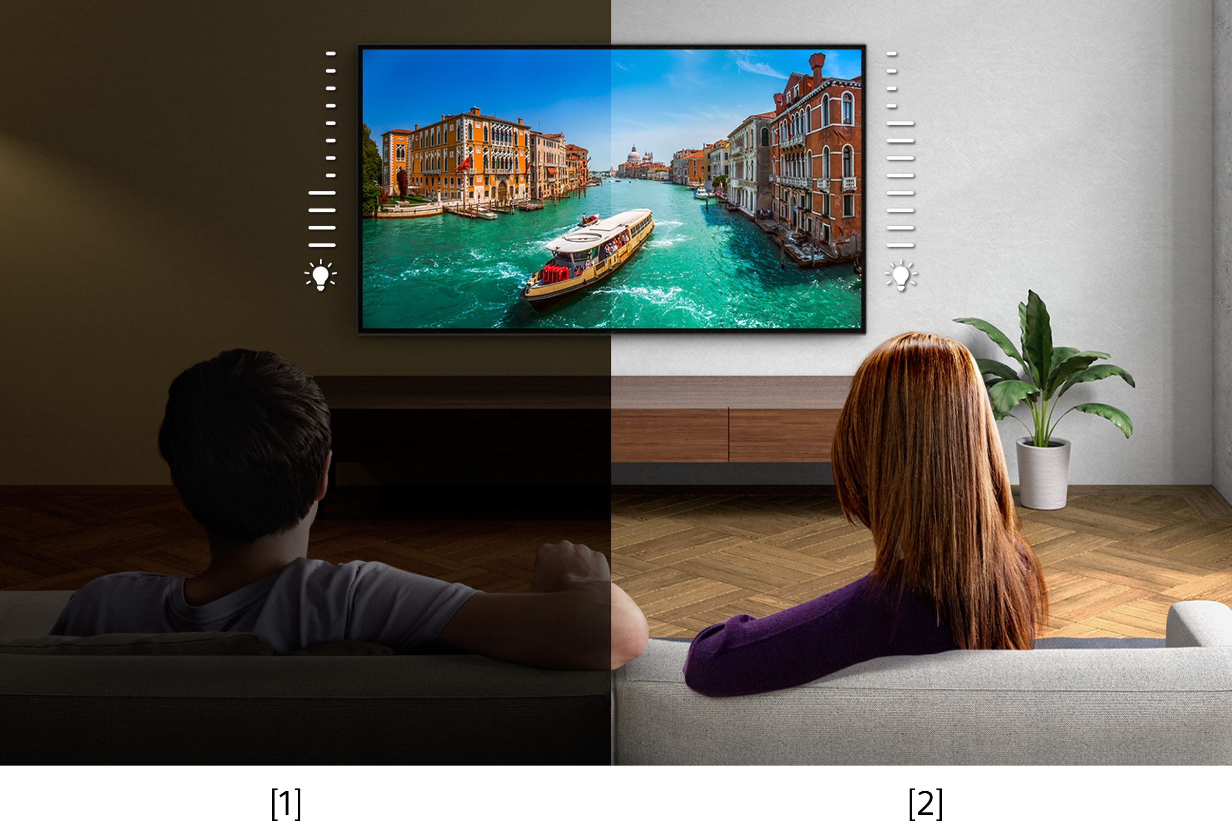 [1] 暗い環境で視聴している場合 [2] 明るい環境で視聴している場合